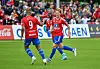 Han har vært ute av førsteelleveren i noen kamper, men i dag fikk Ulrich Østigård Ness sjansen fra start, til spill mot Grorud og broren Fabian. Her Gratuleres Ulrich etter 1-0 målet av Johnny Buduson og Sulayman BojangFoto: Anders Vindegg