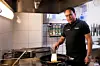 Yaqub Malik i gang med å lage maten som får folk til å komme tilbake dag etter dag. Foto: Morten Lauveng Jørgensen