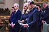 Kronprins Haakon, kronprinsesse Mette-Marit og statsminister Jonas Gahr Støre (Ap) under takkegudstjenesten for Desmond Tutu i Oslo domkirke.Foto: Håkon Mosvold Larsen / NTB