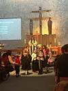 En pirat og en klovn leder gudstjenesten. Det gikk bra. Foto: Kjersti Opstad