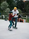 Sønnen Adam (6), som med litt hjelp fikk til trikset «board slide» for første gang, skildrer i likhet med faren en positiv opplevelse.