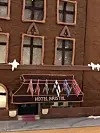 Ikke noe i veien med detaljene: Selv en rosa løper er på plass ved inngangen til pepperkakehotellet Bristol.Foto: Hotel Bristol