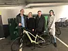 Fornøyde aktører ved lanseringen av sykkelparkeringen. F.v. Halvar Bergh i Bikely, Mona Elisabeth Gladhus i One Park, Øyvind Killi i OnePark og Ellen Loxley i BikelyFoto: Katrine Lunke