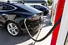 En Tesla Model S står til lading på på en supercharger i Østfold. Foto: NTB Scanpix / Tore Meek