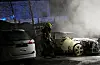 Tre biler var ikke mulig å redde da flammene tok tak. Her brannvesenet ved en av de utbrente bilene.Foto: Muhammad Iqbal
