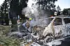 Tre av bilene brant da brannvesenet ankom stedet. Det var spredningsfare til tre av dem.Foto: Geir Olsen / NTB