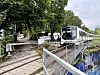 Den nye gangbrua ble heist på plass natt til 7. september. Rundt nyttår vil den etter planen åpne for bruk.Foto: Sporveien AS