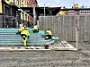 Asfalten ble rullet ut på området få dager før gjenåpning.Foto: Ingri Valen Egeland