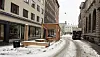 Bymøblene, som nå er ryddet vekk, sto tomme og ubrukte i Øvre Slottsgate. Snøen lå på benkene. Foto: Øystein Aurlien