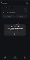 Dette var beskjeden som kom opp ved forsøk på søk i reiseplanleggeren i Ruter-appen torsdag formiddag.Skjermdump: Ruter