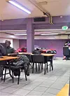 Langs veggen finnes det nå en mini serveringsstasjon, hvor du kan få deg en wiener eller en toast med potetgull. Hvis du har arbeidsplassen din i sentrum og det rykker i bingofoten, kan du fint få lagt inn noen spill i lunsjen akkompagnert av en liten matrett.