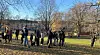 Alle byens fuglekikkere, samt en god del andre inntok Torshovparken for å få et glimt av den sjeldne slagugla oppe i treet.Foto: Petter Vellesen