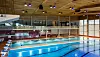 Montebello Bad og Trim består av et stort svømmebasseng, badstuer og treningsapparater.