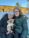 Guro og Simen sammen med hunden Wilma på Kjølebrønn utenfor Kragerø.Foto: Privat