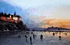 På islagt fjord i Pipervika kunne byens befolkning utøve skøyesporten. Maleriet er titulert "Skøyter på fjorden, Akershus" Og er malt i 1869 av Peder Cappelen Thurmann. Foto: Oslo Museum.