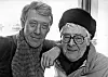 NRKs legendariske skøytekommentatorer Knut Bjørnsen (til v.) og Per Jorsett avbildet under VM på skøyter på Hamar i 1985. Foto: Henrik Laurvik / NTB / scanpix