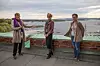 Vindgudene spilte ikke på lag da ordfører Marianne Borgen (f.v.), rådhusforvalter Marit Jansen og rådhusets driftsjef Kristin Sundby stolt viste frem det nye solcellepanelet.Foto: André Kjernsli