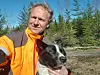 Viltvokter Bjørn Håvel Lønnum med elghunden sin. Han forteller at hunden flere ganger har blitt angrepet av andre hunder, noe som viser hvor dårlig oppdratt en del hunder kan være.Foto: Privat