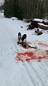 Steinar Berntsen over et blodig syn. To løse huskyer sto i skiløypa og spiste
