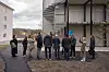 Flere deltok i omvisningen av Skøyenåsens nyeste hjem for flyktninger. Fra venstre: Prosjektleder Allan Nielsen i Boligbygg, Mustafa fra Tyrkia, som skal flytte inn i en av leilighetene, byråd for sosiale tjenester Julianne Ferskaug og leder av Østensjø bydelsutvalg, Bjørn Strøm.Foto: Jurgis Bingelis