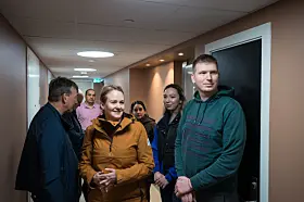 Med på omvisningen var også representanter fra bydelsadministrasjonen og Boligbygg Oslo KF. Det var også Vladyslava og Serhii, som kom fra Ukraina i februar, og Mustafa fra Tyrkia, som har bodd i Norge i snart to år. De tre er de første som får flytte inn i de helt nye leilighetene.