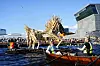 Hesten ble heist ned på vannet i forbindelse med feiringen av sankthansaften i Bjørvika i bydel Gamle Oslo. Mange hadde møtt fram for å feire og se hestebålet ved Sukkerbiten like ved det nye Munch-museet.