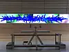 I gulvet finner jeg tre glassfliser med inskripsjoner som må foreviges. Jeg er ingen fotograf, og må ha flere forsøk før jeg får et bilde av alteret som ikke er skeivt. Jeg finner et kors som står ensomt og forlatt ved siden av alteret, og hvordan får man egentlig til å ta bilder av et galleri? Jeg må se ut som en forvillet turist som har kommet bort fra mitt følge og som nå går rundt på måfå og knipser bilder i Bøler kirke.