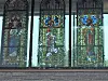 Glassmalerier dominerer den ene veggen i kirken. Foto: Kjersti Opstad