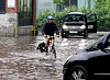 Store nedbørsmengder også for ti år siden. Her forserer en syklist vannmengder i Maridalsveien sommeren 2011.