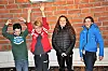 Bolteløkka-elevene Nicolai, Johannes, Rakel og Marte jublet onsdag for bystyrets vedtak om å utvide skolegården ved Bolteløkka skole. Foto: Christian Boger