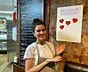 Kjøp en hjertepizza av Amanda og Louis pizza henger hjertet opp på veggen. Da kan folk med dårlig råd plukke ned hjertet og veksle det i en gratis pizza.Foto: Privat