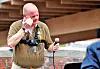 Mange egg og tomater ble kastet på organisasjonen Stopp islamiseringen av Norge (SIAN) under demonstrasjonen på Mortenserud tidligere i år. Her får leder Lars Thorsen et par egg rett i fleisen.Foto: Terje Pedersen / NTB scanpix