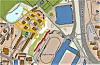 Den røde streken markerer vandringssperren, de gule er veiene salamanderne gjerne velger gjennom borettslaget. Salamanderhotellene blir plassert på de hvite felteneKartgrunnlag: Norgeskart.no