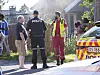 Nødetatene med beboere og naboer foran den brennende tomannsboligen.Foto: Muhammad Iqbal