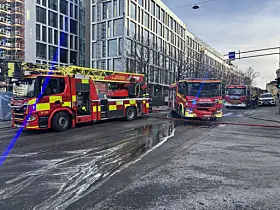 Stengte Sannergata som følge av bygningsbrann: – Foregått en form for arbeid som mest sannsynlig har antent brennbart materiale i konstruksjonen