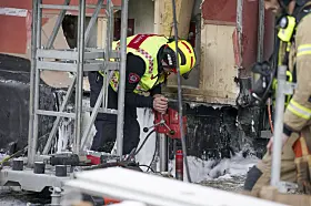 Et kvarter senere meldte politiet at brannvesenet hadde stanset brannutviklingen, men at de måtte bruke tungt utstyr for å få tilgang.