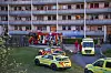 En person er kritisk skadd: Nødetatene på plass ved blokka der det brant i en leilighete mandag kveld.