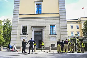 En mannlig, belarusisk statsborger i 50-årene, kjørte opp på baksiden av Slottet i elektrisk rullestol og kastet to molotov cocktails, så det ble flammer på stedet.