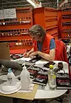 Glenn Johansen signerer krimboka si, Sjeledød, ved pulten sin på Østlandsterminalen.Foto: Anja Wærriø-Larsen