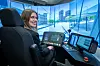 Miljøbyråd Sirin Hellvin Stav (MDG) i simulator for de nye trikkene. Her på vei forbi gamle Vestbanen på vei mot Rådhusplassen.Foto: Heiko Junge / NTB