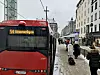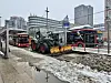 54-bussen tar i bruk trikkefeltet ved plattform B for å komme seg videre, mens brøytebilen fortsatt står ved plattform A.Foto: Petter Terning