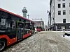 En brøytebil fikk nemlig stans i det ene feltet der bussene