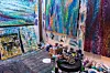 Noen av maleriene til Jørgen Ringstrøm, som arbeider på Stampen. Foto: Manon van Goethem