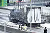 Bare et utbrent skjelett igjen av lastebilen, som nå er tauet vekk.Foto: Terje Pedersen / NTB