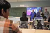 Høyre-leder Erna Solberg, nestleder Tina Bru og Oslos skolebyråd Julie Remen Midtgarden hos klasse 7b på Bryn skole første skoledag.Foto: Ole Berg-Rusten / NTB