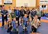 Gullvinnerne (foran fra venstre) Emilie Ljosåk, Djabrail Chitigov, Iben Tippie Tijmons Lekhal og Samirhan Arsanalijev hadde sammen med resten av de unge SP 09 bryterne et veldig vgodt landsmesterskap. Foto: Sportsklubben 09