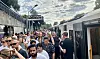 – Til kampen er et lurt tips å reise «motstrøms», og ta Linje 5 Ringen via Tøyen fra sentrum, er Ruters oppfordring til cupfinaletilskuere som skal ta T-banen den andre lørdagen i mai. Her bilde av folk på T-banestasjonen Ullevål stadion i forkant av den første av Ed Sheerans konserter på Ullevaal Stadion i fjor sommer.Foto: Ingri Valen Egeland