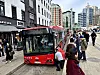 andre rutebusser stående i kø. På flere av bussene forlot utålmodige passasjerer