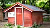 Et av lekeskurene fra den opprinnelige barneparken er vernet, og har fått sin naturlige del som utstillingsobjekt i den nye aktivitetsparken.