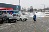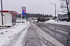 sykkelfelt, lastebiler og utkjøringer fra både bensinstasjonens vaskehall og